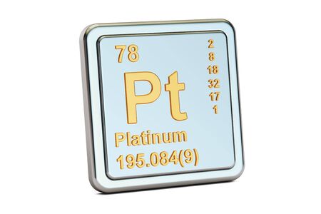 プラチナ Pt 元素記号 白い背景に分離された 3 D レンダリング の写真素材 画像素材 Image